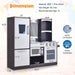 Introducing the coffee-coloured kitchen toy set, designed for children who love to cook! With a realistic design including a blackboard, refrigerator, microwave oven, oven, sink, and two-tier shelf for various cooking processes. In addition, this fun kitchen set will inspire children's cognitive ability, hand-eye coordination, brain development, and social skills. Your child can even write down recipes, wash vegetables and fruits, and cook meals in the large storage space. What's more, fitted with openable refrigerator and various shelves, this kitchen set can store all your cooking gadgets or toys. By the way, this set also features three practical hooks, a side towel bar for towel and glove storage. Order now and watch as your child becomes a master chef! Realistic Kitchen Experience: Your child will love the realistic design of this mini pretend toy kitchenette. Equipped with toy microwave oven, oven and gas stoves, this kitchen set allows children to try various of process of cooking with fun. Ample Storage Space: Designed with plenty of storage space, this kitchen toy set is equipped with an openable 2-layer fridge and multiple shelves to provide plenty of storage space for your child's simulated food toys and kitchen accessories, keeping everything neat and organized. In addition, the kitchen set is fitted with 3 practical hooks and side bar for towel or glove hanging. Safety Design: Designed with safety in mind, this wood kitchen set features rounded corners that ensure the safety of children during playtime. Apart from that, crafted from high quality pine wood, this sturdy constructed toy kitchen set allows for long times of playtime. Ideal Gift Choice: Whether it's for birthdays or other special occasions, our mini pretend toy kitchenette would make a perfect gift for kids aged 3 and up. More than just a toy, this kitchen set can stimulate your child's cognitive ability, hand-eye coordination, brain development, and even social skills. Multi-occasion Application: Weights only 20 kg, this kitchen set is easy to move through different rooms. And the coffee-coloured exterior can be easily fit into the decoration of indoor places. In conclusion, this kitchen set is prefect for bedroom, play room or kindergarten.