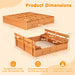 Crafted from sturdy cedar wood, this outdoor sand box ensures durability and safety. The flexible metal hinges allow for a smooth transition from comfortable seating for up to 4 children to a protective cover. The spacious play area holds 375 kg of sand, offering endless exploration and fun for kids aged 18+ months old. Featuring a bottom liner to prevent spills and proper drainage, this wooden sand pit is both practical and enjoyable for children’s outdoor playtime, making it a versatile addition to your backyard, garden, or patio. Convertible Design: Utilizing flexible metal hinges, the benches on this wooden sandbox easily convert into a secure cover, keeping your sand clean and free from animals. The seamless transition from playtime to protection helps maximize your outdoor space. Comfortable Seating: The kids sand box boasts 2 benches offering 4 wide seats with backrests. Each bench can hold up to 100 kg, creating a safe and sturdy space for children to sit and play. The thoughtful design provides little ones with endless hours of comfortable play. Stable Construction: Crafted from high-quality cedar wood, this outdoor sand pit is sturdy and splinter-free. The strong connections create a secure environment for kids to enjoy. Ideal for children above 18 months old, the sand box is both practical and aesthetically pleasing. Spacious Play Area: The generous play area accommodates up to 375 kg of sand, perfect for little ones’ exploration. Equipped with a liner to prevent sand from spilling, the open-bottom design allows for proper drainage, maintaining a clean and engaging space. Wide Application: Designed to fit the backyard, garden, or patio, this large sandbox is a versatile addition to your outdoor environment. Not only does the sand pit serve as a fun play area for little explorers, but it also beautifully complements your exterior decorations.