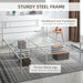 Cherish the joys of uninterrupted sleep with our bed frame's sturdy steel structure. Engineered for stability, it minimizes noise and movement, allowing you the peace you need. The elegant design includes an elevated head and end boards, ensuring your mattress stays securely in place.