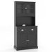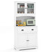 With a top cabinet, 2 pull-out drawers, and a 2-door cabinet at the bottom, you can easily store your dishes, spices, small appliances and more. The customizable 3-position adjustable shelves (3 cm for each level of upper shelf and 6cm for lower shelf) allow you to tailor the storage space to accommodate items of different sizes. More, crafted with high-quality boards, this pantry cabinet is built to last. Unlike other cabinet that is vulnerable to hazard, ours is child and pet friendly with wide base as well as the safety anti-toppling devices. Embrace modern design with thoughtful details like translucent glass doors for easy item visibility, convenient handles, and smooth slides for effortless access. Suitable for various settings in your home, such as the kitchen, living room, or dining room, this multi-functional storage solution adapts to your diverse storage needs with practicality and elegance. Bullet Point:Large Space with Adjustable Shelves: The buffet cabinet offers ample space and keep your room tidy with top cabinet, 2 pull-out drawers and a 2-door cabinet at bottom. Moreover, 3-position adjustable shelves allow you to store different sized items. Wide Countertop with Cable Hole: The sideboard provides a spacious countertop for your appliances such as microwave, coffee maker or kettle. With convenient cable management hole on the back panel, you can manage all of wires effortlessly and have a clean, simple countertop. Premium Materials and Solid Construction: Crafted with high-quality boards, the pantry cabinet features lasting durability. Wide base enhances support, and safety anti-toppling devices help fix the cabinet on the wall for added stability and peace of mind. Thoughtful Details: This high buffet is designed in a contemporary style and equipped with thoughtful details. Translucent glass doors make it easy for you to find items quickly. In addition, convenient handles and smooth slides allow the drawers to be easily pulled out, making it easy for you to access interior items. Multi-Functional Storage Solution: Embrace versatility with the sideboard, which is ideal for various settings like the kitchen, living room, or dining room! Whether used as a buffet cabinet, pantry cabinet, sideboard, or cupboard, this adaptable piece caters to diverse storage needs with practicality.