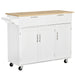 Adorned with a fresh, clean white finish complemented by a natural wooden top, our kitchen island seamlessly integrates into various home environments. It is accentuated with polished metal handles, adding a refined touch to its overall modern aesthetic.