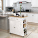 Want to declutter your kitchen counters? This kitchen island features three strategically placed shelves providing the perfect nook for your spices, jars, or condiments, always within arm's reach. Moreover, the two smooth-gliding drawers and a spacious bottom cupboard offer ample space to stash away utensils, pots, pans, and other kitchen must-haves. An adjustable shelf within the cupboard can be fixed at three differing levels, catering to items of various heights.
