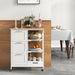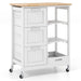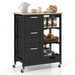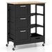Experience Unparalleled Convenience and Organization in Your Kitchen! Our kitchen island rolling cart features an abundance of storage options, including 3 deep drawers, 2 open shelves, a large countertop, and a serving tray, providing you with plenty of room to organize and display your kitchen essentials with ease. And the serving tray is removable, which is perfect for serving drinks and treats. Other than that, crafted with a solid rubber wood tabletop and solid pine wood legs, this cart boasts a sturdy and stable structure that can withstand the demands of daily kitchen use. You can also move this cart around your kitchen, dining room, or garden to enjoy mealtime or teatime with 4 universal wheels. 2 of them can be locked, offering stability when needed! Ample Storage Space: This kitchen island cart comes with 3 deep drawers for utensils and cutlery, 2 open shelves for quick access to frequently used items, a serving tray with raised edges to protect items from falling off, and a large countertop for meal prep and display. Robust & Stable Structure: The utility cart boasts a solid rubber wood tabletop that is highly resilient to daily wear and tear, ensuring long-lasting use. Besides, it is reinforced by solid pine wood legs, offering stability and support for all your kitchen activities. Easy Movement: Equipped with 4 universal wheels, including 2 wheels with lock, this cart allows you to effortlessly move it around your kitchen or home. It is perfect for various occasions such as hosting dinner parties, serving drinks by the pool, or as an additional workspace during meal prep. Flexible Layout Design: Tailor the cart to your needs with its free combinations. 3 drawers can be placed on the left or right, while the removable serving tray can be used separately or placed on any of the open shelves for added versatility. Easy Maintenance: This portable serving utility cart measures 67 cm x 37 cm x 83.5 cm (L x W x H), and we provide clear illustrations in the user’s manual for installation reference. Additionally, the cart's smooth surfaces make it a breeze to wipe clean, ensuring hassle-free maintenance for busy households.