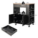 Whether you're a seasoned chef or a culinary enthusiast, our kitchen cart is your trusty sidekick with ample storage tailored to your needs. You'll delight in the generous workspace it offers on top, ideal for chopping, mixing, or arranging a cheese board. A spacious drawer glides smoothly to store utensils or napkins, while the open shelf and expansive cabinet welcome pots, pans, and other essentials. Keep your kitchen clutter-free and everything within arm's reach!