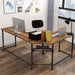 The corner computer desk gives you spacious office space and improves your office efficiency! This office desk has a large office countertop to meet your full needs with different working items. At the same time, high-quality particle board countertop and solid iron frame give you a safe and stable office environment. The footpad can be adjusted to protect the ground to a certain extent and adapt to uneven ground. You can also put it in the bedroom, game room, study room, etc. The L-shaped design makes full use of the space, and it has a separate CPU stand, so that the CPU does not need to be placed directly on the ground to avoid dampness. If you are looking for such a corner computer desk, don't hesitate to place an order! L-Shaped Design for Saving Space: This home office desk is uniquely designed L-shaped. With a charming and simple appearance, the study table can adapt to any corner, making full use of limited space. And it can be placed in the office, bedroom, game room or any other place. Safety Protection and CPU Stand: This corner writing workstation is designed with adjustable leg pads, which can adapt to uneven ground. Round table corner design can also prevent bumps and protect your family. Besides, it is equipped with an independent CPU stand, which can facilitate you to store the CPU. Spacious Working Space: The large desktop gives you a comfortable working space. You can put your computer and a considerable number of other items, such as lamps, cups, magazines and other office necessities, meeting all your office needs with great work efficiency. Stable and Durable Structure: The particle board desktop is not only smooth, but also sturdy and durable for your daily use. And the material of thick iron tubes and support bars greatly increase the stability, leading to the result that the corner working desk can withstand up to 100kg of external force. Easy Assembly and Simple Maintenance: The package comes with clear manual and complete accessories, so you just need to take a few minutes to install the L-shaped computer desk by tightening several screws in position. Plus, the smooth and wear-resistant surface makes it easy to clean with a damp cloth.