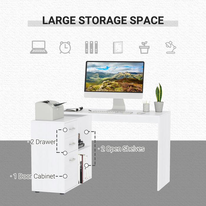 Keep your workspace tidy and your mind clear with integrated storage options. Equipped with dual drawers and a cabinet, this desk allows you to stow away paperwork and supplies, minimizing clutter. Plus, two open shelves provide quick access to books or decorative items, making organization a breeze.