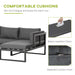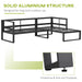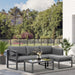 Optimized for space-saving considerations, the corner-oriented layout fits snugly into more compact outdoor areas, making it the perfect candidate for both extensive lawns and modest balconies alike. Escape into your personal oasis with this modern garden furniture set and embrace the blend of aesthetic appeal and practicality.