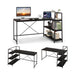 The contemporary L-shaped desk is a symphony of form and function. It offers an expansive surface to accommodate your laptop, multiple monitors, necessary equipment, and personal accessories. What sets this desk apart is its reversible shelving unit. Whether you're a left-handed visionary or a right-handed strategist, configure the shelves to your preference for the utmost convenience and workflow efficiency.