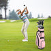Weighing a mere 5.5kg, the entire set is exceptionally lightweight and tailored for women's comfort. The accompanying stand bag, with its adjustable straps, allows for hassle-free transport akin to a backpack. With non-slipping feet, it remains stable on the ground, ready for your next swing.