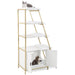 The hidden cat litter box furniture offers a spacious and hidden retreat for your kitten, while ensuring litter mess is fully contained. With vented holes and side entry, the hidden cat washroom promises that odors are kept at bay. Meanwhile, the functional cat litter box enclosure provides versatile storage shelves with its 5-tier shelving system. Additionally, the ladder shelves double as jumping platforms for cats to explore. With 5 removable & machine washable mats, the hidden cat cabinet offers cozy and clean resting spots that your cats will love. The adjustable feet provide unmatched stability, while the anti-tipping devices ensure that accidents are prevented. Furthermore, the unique ladder design and industrial style will elevate the style of your space, making the tall pet cabinet a decorative furniture. Large Hidden Cat Washroom: The double-door enclosed cabinet with air vents not only offers privacy for your feline friends but also works to minimize unpleasant odors and reduce cat litter spread on the floor, ensuring a fresh and tidy environment that both you and your cat will appreciate. 2-in-1 Practical Design: With 5-tier shelves, the cat washroom furniture allows you to store your pet supplies, books, storage baskets, or display your favorite decorations. Meanwhile, the 5 shelves enable cats to observe the surroundings and release their active natures. Safety Comes First: The large cat house furniture is equipped with adjustable feet on all 4 corners to ensure stable placement even on uneven floors. Additionally, anti-tipping device is integrated into the design to prevent any risk of sudden collapses. Prioritizing Cats’ Comfort: The cat litter box enclosure is equipped with 5 soft plush mats, allowing your furry friends to curl up comfortable. These mats are fixed by hook & loop fasteners, enabling you to transfer the position as will. Plus, the mats are machine washable for easy maintenance. Stylish Design & Proper Size: Featuring luxury white and gold color scheme, the cat litter box enclosure is a stylish furniture for your home. The overall dimension of the cat cabinet is 92 x 49 x 149 cm(L x W x H). Recommended size of litter box is smaller than 57 x 45 x 42 cm(L x W x H).