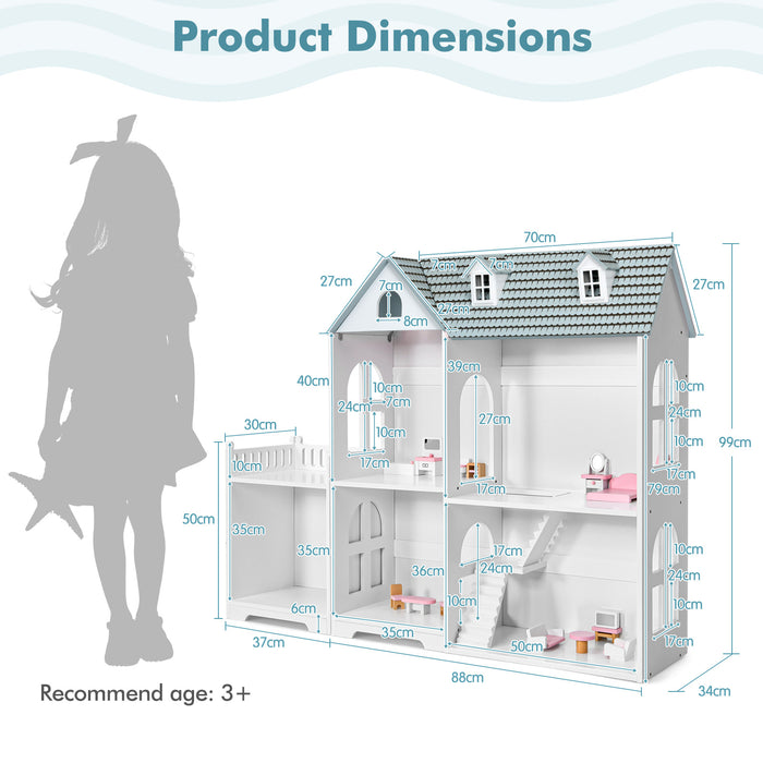 Setting up the dollhouse bookcase is a breeze, thanks to the clear instructions and provided accessories. Measuring at 125 x 34 x 99 cm, this compact size makes it a suitable fit for any room size, and the smooth surface facilitates easy cleaning, helping maintain the allure and hygiene of your child's personal haven.