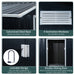 Featuring a sloped roof that effortlessly channels rainwater away, your shelter ensures prevention against water damage, stagnation, and potential rust. Ample inner air circulation is provided by four strategically placed ventilation slots, reducing moisture and maintaining a fresh environment within.