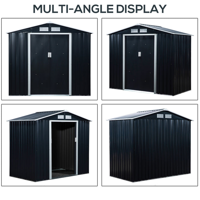 Enjoy a dependable and low-maintenance storage solution clad in an understated dark grey hue that not only serves a practical storage function but also blends seamlessly into your outdoor landscape. Ready to assemble with a step-by-step manual, this spacious shed is the perfect addition to any garden, patio, or backyard.