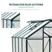 The greenhouse stands on a robust aluminum framework, promising durability and stability. Equipped with integrated rain gutters, it ensures that every drop of precious rainfall is captured, contributing to a sustainable watering system for your greenery.