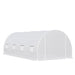 Equipped with eight strategically placed roll-up windows, this greenhouse affords the luxuries of cross ventilation and climate control. The fine mesh covering prevents pests, yet provides a glimpse into the thriving green oasis within.