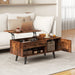 Discover the ultimate blend of style and utility with our lift top coffee table. With a simple pull, the elevated work surface is provided to place your laptop or enjoy a meal comfortably from your sofa. Below the lift top, the hidden compartment awaits. An open shelf serves as the perfect spot for decorative items and storage box. Additionally, the side cabinet offers discrete storage for those items you prefer tucked away, maintaining a neat and tidy area. Its sturdy structure leaves you no worry about load bearing capacity and using reliability. This flip-top coffee table evolves into an indispensable piece of furniture in your home. Convenient Lift-Top Design: The coffee table is equipped with a gas struts lifting mechanism, makes it easy to lift and lower of the tabletop from 46cm to 60cm. This considerate design turns your coffee table into a makeshift workstation. Spacious Hidden Compartment: The flip-up top reveals ample space for your essentials, keeping them out of sight but within easy reach. You can stow away remotes, books, and sundries to maintain a minimalist look in your living room. Multifunctional Shelf and Cabinet: Whether showcasing decorations or organizing magazines, the open shelf and back storage space present accessible display spots. Besides, the side cabinet offers concealed space to keep your living area neat and orderly. Reliable Construction: Made of thickened engineered wood and MDF, this lift-top coffee table ensures long service life. The slanted support legs provide a stable base for your items while the non-slip foot pads prevent the floor from scratches. Elegant Yet Practical Piece: Its timeless design seamlessly integrates with any home style, making it the perfect central piece for your living room. Whether used for daily coffee breaks or as a desk, this flip-top center table is an ideal choice.