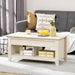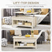 At first glance, it's a stylish coffee table that complements your decor. But there's more than meets the eye. The tabletop smoothly transitions to a higher level with a simple lift, converting it into a personal workstation or dining surface right in your living room. Below this transforming tabletop, a secret compartment is revealed, offering ample hidden storage for your reading materials, remote controls, and other essentials to maintain a clean and organized space.