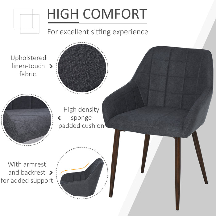 Experience unparalleled comfort with our chairs' plush padding, elegantly ensconced in a sleek linen-like fabric that offers a soft touch and refined look. Designed with both armrests and a contoured backrest, these chairs deliver ergonomic support that welcomes relaxation and enjoyment at any dining occasion.