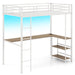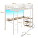 Picture selecting from over 60,000 colors and countless dynamic modes right from your smartphone—transforming your room’s vibe on a whim for any occasion. It’s not just about the visuals; the smart, spacious design includes an L-shaped desk and generous storage, turning your bedroom into a chic, multifunctional hub perfect for work, play, and relaxation. Never worry about your devices dying mid-use again, thanks to handy built-in charging stations. Sleep soundly with heightened safety features like a robust guardrail and secure ladder, all while supporting up to 200 kg on this trendy, sturdy metal frame. Say goodbye to ordinary sleeping spaces—upgrade to brilliance and functionality today and cap off your nights with a sparkle! Customizable Lights, Smart Control: The loft bed features a dazzling customizable LED light system to transform your bedtime experience. With 60,000 color options and dynamic modes at your fingertips via app or remote, you can create the ultimate ambiance for different occasions! Plus, the adjustable brightness and timing period contribute to customized fit. Optimize Your Space: This high sleeper bed is your ticket to a clutter-free, multi-functional living area. It comes with an L-shaped desk and two spacious storage shelves, making it the perfect setup for gaming, studying, or turning your room into a home office. Power Up, Game On: Never let a low battery interrupt your fun! The single loft bed includes a built-in charging station with 2 AC outlets and 2 USB ports, keeping your devices charged and conveniently within arm’s reach. Safety Comes First: Enjoy a good night’s sleep with the peace of mind that comes from the upper bunk’s 27 cm safety guardrail. Plus, the secure 4-step ladder makes climbing into your cozy bed a breeze, blending safety with effortless convenience. Durability Meets Style: Built to withstand the test of time, the heavy-duty metal loft bed with sturdy metal slats and 2 anti-tipping kits is capable of supporting up to 200 kg. Say goodbye to box springs and hello to a sturdy, long-lasting bed that’s as stylish as it is strong!