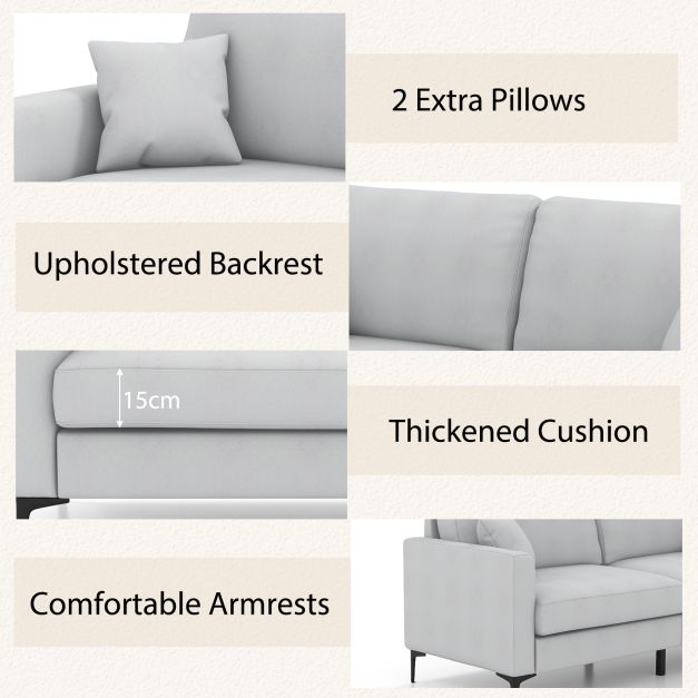 Our loveseat is meticulously engineered to mirror the body's natural contours, ensuring superior comfort every time you sink into its embrace. The plush, padded backrest and seat cushion lend additional support to key areas like your back and lumbar region, effectively minimizing bodily strain. For added relaxation, the armrests are positioned to allow for an effortless, restful hand placement. The top-tier sponge padding enveloped in a soft, linen fabric not only provides a velvety touch but also promises durability. Furthermore, cushion cover zippers facilitate easy removal for cleaning, maintaining your sofa's pristine look with minimal effort.