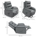 Discover a haven of relaxation with our recliner's comprehensive massage system. Boasting eight strategically placed massage points across the neck, lumbar region, thighs, and legs, this recliner offers a full-body massage experience. With three levels of intensity and eight unique modes, you have the power to personalize your massage to suit your comfort preferences, complete with a convenient 15/30 minute timer for controlled therapy sessions.