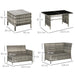 This exquisite outdoor set exemplifies durability wrapped in contemporary style. Its rust-resistant metal frames and weather-proof rattan integrate effortlessly with various garden decors while offering sturdy support and enduring beauty. The full ensemble comes with grey-toned cushioning that seamlessly complements a range of outdoor themes.