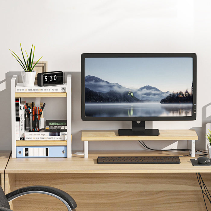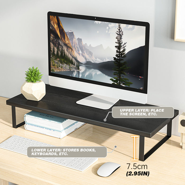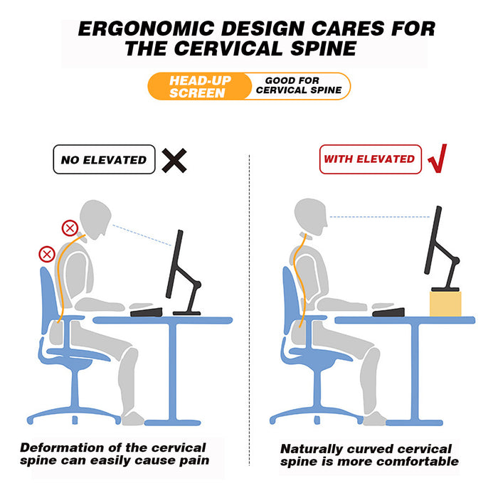 The desk riser is not just another piece of decor, it's designed with your well-being in mind. It positions your monitor at an ergonomic height, aiding in the reduction of eye, neck, and back strain commonly associated with computer work. Its minimalist yet trendy design complements any home setting, enhancing its appeal while offering a clean, clutter-free workspace.