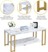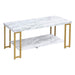 Boasting a luxurious faux marble top, our coffee table adds a dash of elegance. The pristine white surface is perfectly complemented by a polished golden frame, making it a versatile addition to any interior design scheme. Whether placed in your living room, bedroom, or office, this table offers a sophisticated touch to your decor.