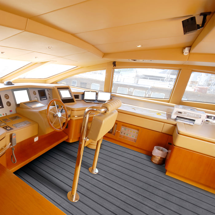 Our versatile boat flooring transcends beyond the marine environment, finding its place on yachts, ships, and even land-based applications such as RV flooring and swimming pool areas. The durable and elegant vertical stripes will add a sophisticated touch wherever applied. Each sheet measures an ample 240 x 90 cm (L x W) and comes in an attractive palette of Brown or Grey options, blending seamlessly with various aesthetics.