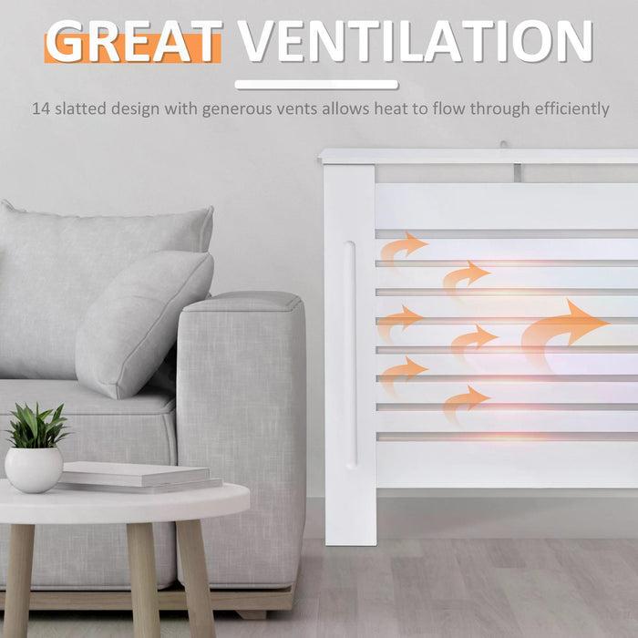 Constructed from superior E1 grade MDF, our sturdy and long-lasting radiator cover provides reliable protection for years to come. The refined white finish complements any interior palette, making it a timeless addition to your home or office.