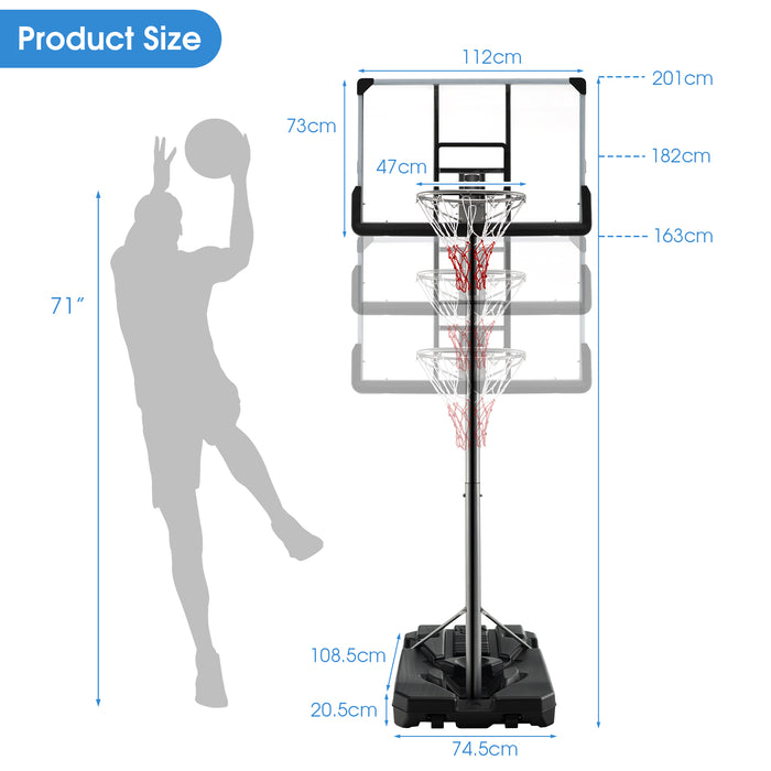 Our hoop is engineered with versatility in mind. It comes equipped with a smooth-turning knob, allowing players to modify the ring's height to 163, 182, and 201cm. Whether you're a teenager working on your layup or an adult fine-tuning your three-pointer, this hoop adjusts seamlessly to your growth and training needs.