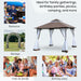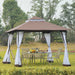 At the canopy's peak, a sophisticated double-tiered roof crafted from premium polyester adorned with a PA coating awaits. This ingenious design repels rain, allowing water to cascade smoothly off the edges, while encouraging optimal airflow for those beneath. Furthermore, the roof harbors 8 thoughtfully positioned leaking holes, ensuring no water accumulation and extending the gazebo's longevity.