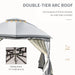 Constructed from high-quality polyester with a protective PU coating, the dual-tiered arc roof ensures rainwater smoothly cascades down without pooling. This innovative design not only enhances the gazebo's charm but also sustains refreshing air circulation above. Moreover, a centrally located hook beckons you to add a touch of ambiance with a hanging lamp, perfect for those enchanting evenings under the stars.