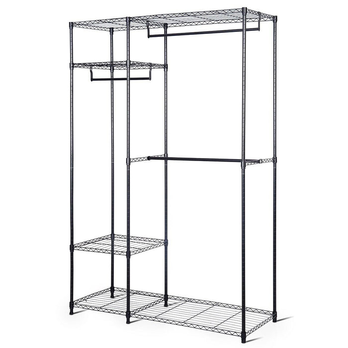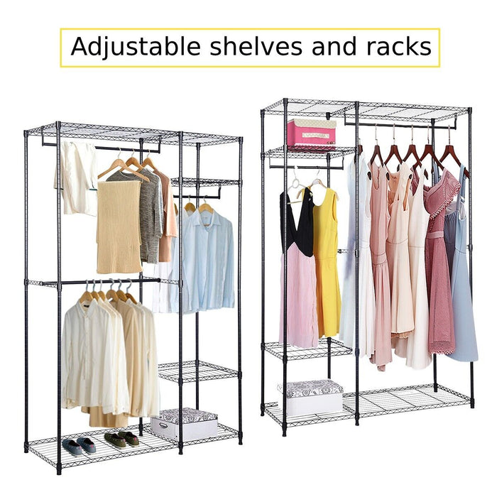 Accessibility is a cornerstone of this clothes rack's design. The customizable height of both hangers and shelves means you can arrange your wardrobe to suit your reach, allowing for an effortless retrieval of your clothing. An open shelf construct promotes breathable storage—ideal for maintaining the integrity of your treasured garments.