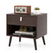 Looking for a stylish nightstand for your bedroom? This mid-century nightstand adds a touch of charm and whimsy to your space. The side table comes with a top area for lamp, cup, glasses, etc, a slide-out drawer for personal items, etc, and bottom shelf for books, storage basket, etc. With solid wood legs supporting its structure, this bedside table promises long-lasting stability. Whether by your bed or next to your sofa, this side table serves as the perfect spot for multiple places. Mid-century Aesthetic: The nightstand with drawer features charming mid-century style that adds a touch of character and elegance to your room. The rustic wood grain is selected to enhance upscale aesthetic. Clutter-free Space: This end table boasts a pull-out drawer to tuck away personal items, paired with an open storage shelf, making it a breeze to store and access your bedtime essentials. The top area complements display and storage space. Reliable Structure: The solid wood legs are smart choice as they have longer lifespan compared to other materials. Thus, the side table is less likely to wobble over time. Additionally, non-slip foot pads prevent the floor from scratches. Multipurpose Design: Not just for bedroom, this 3-tier end table enhances your living room space. In addition, the versatile end table will transform any lounge area with its functionality and charm. User-friendly Design: Fitted with smooth metal slides and pull strap, the mid-century nightstand is easy to open and close the drawer. By the way, the illustrated instruction is provided to shorten assembly time.