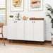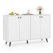 Unlock the secret to a tidy and stylish home with our 4-door buffet sideboard. Elevated for easy cleaning and equipped with sleek, smooth-operating doors, this piece isn’t just furniture—it’s a lifestyle upgrade. With 2 adjustable shelves perfect for everything from linens to dishes, and sturdy support ensuring it stays put, it blends timeless mid-century charm with modern safety features. Ideal for the living room, dining area, or hallway, this standout piece will keep your spaces organized and looking great. Bring home the blend of style, convenience, and peace of mind that every modern household deserves! Maximize Your Storage Space: Get ready to declutter with ease! This 4-door buffet sideboard features a generous tabletop and two 5-position adjustable shelves, offering endless possibilities for organizing your essentials in style. Built to Last: Say goodbye to wobbly furniture! With 5 sturdy metal support legs providing reliable center support, this storage cabinet is designed to withstand the test of time and avoid sinking, ensuring durability for years to come. Safety First: Standing tall at 90cm, this freestanding accent cabinet comes with 2 anti-tip kits for added peace of mind. Anchor it to the wall to prevent wobbling or toppling over, keeping your space safe and secure. Convenience at Your Fingertips: Cleaning just got easier! Raised 12cm off the ground, this console cabinet leaves ample space for hassle-free floor cleaning. Plus, the sleek knobs and premium metal hinges make opening and closing the doors a breeze. Elevate Any Space: Add a touch of mid-century modern charm to your home! With its sleek lines and 4 tapered legs, this versatile sideboard fits seamlessly into living rooms, hallways, dining rooms, and kitchens, bringing style and functionality wherever you need it.