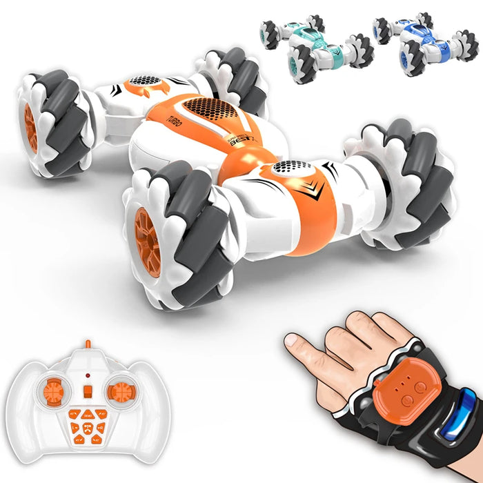 The RC Stunt Car, Item No. S-012, is delivered complete with an original box, batteries, operating instructions, charger, remote controller, and USB Cable. You'll also find a gesture sensing watch to facilitate hands-free control.