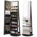 Expertly crafted from high-quality MDF materials and resilient steel hinges, the stability and longevity of this jewelry armoire are beyond question. The robust round base bolsters the structure, promising steadfast service for years to come. Despite its sturdy nature, assembly is straightforward—your new organizational companion tilts towards simplicity with clear instructions for quick setup.