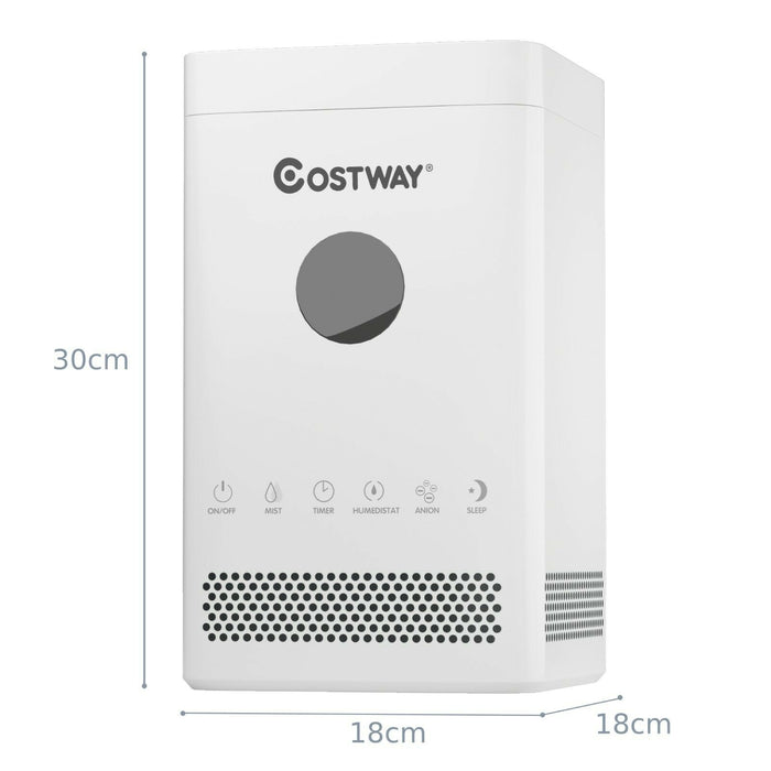 Embrace automation with our humidifier's 12-hour timing function, ranging incrementally from 1 to 12 hours for your convenience. The sleep mode feature sets the stage for an undisturbed night by switching off indicator lights and automatically regulating humidity, while the anion mode works tirelessly to freshen your air, combat bacteria, and foster a healthier environment.