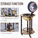 Our Globe Bar Cabinet stands regally upon a foundation of premium solid wood, ensuring longevity and sturdiness. Supported by four reliable pillars, the cabinet is designed for stability and resilience. The bottom shelf, engraved with a traditional compass design, offers additional storage for up to five bottles, efficiently maximizing your space. The exterior of the globe and the legs are meticulously crafted with longevity in mind, providing effortless cleaning and maintenance.