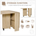 This dynamic table not only expands to accommodate your guests but also features two built-in shelves nestled at its core. These discreet storage shelves are the perfect spots to stow away dinnerware, placemats, and other dining essentials, ensuring your items are easily accessible while cleverly hidden when the table is compact.