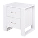 The nightstand doesn't compromise on stability. Its thick, boxy legs not only provide a contemporary aesthetic but guarantee balance, keeping the table steady and upright. The end table sits at dimensions of 54H x 48W x 39D cm, with each drawer's interior measuring 10H x 26W x 33.5D cm, offering a compact yet sufficient storage arrangement for your space.