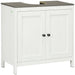 Expertly crafted to maximize your bathroom space, this cabinet features a strategic 'U' shaped cut-out ensuring it fits snugly under most standard sized sinks. Despite its compact design, the cabinet boasts spacious internal storage, perfect for organizing towels, toiletries, and other necessities, all within arm's reach.