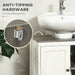 Understanding the importance of stability and safety in the home, the cabinet is equipped with anti-tipping straps, providing added security by firmly anchoring it to the wall, preventing any accidental tipping. Constructed from durable particleboard, it's designed to withstand the rigors of daily use.