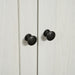 - The cabinet comes in an elegant Antique White and Grey Wood Grain color scheme