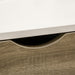 This table's chic white facade aligns seamlessly with contemporary interior trends, while its contrasting wood-effect accents deliver an element of warmth. Its perfectly boxy shape embodies a minimalist aesthetic, ensuring that it complements a variety of decor styles with effortless grace. Place it center stage in your living room or as a functional accent piece in your bedroom; it's built to be versatile.