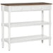 Bearing a timeless white frame and a tasteful wood-effect top, our console table seamlessly incorporates the allure of a classic farmhouse style into modern living spaces. Whether you place it as an accent in your hallway, as a companion to your sofa, or as a practical addition to your bedroom, its versatile nature ensures it fits perfectly wherever it's needed.
