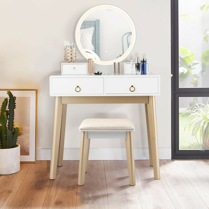 Constructed from premium MDF with solid wooden legs, the vanity set is reliable and sturdy. Non-slip foot pads boost its stability and offer added protection against scratches for your floor. Suited to both function and style, this dressing table is a testament to superior craftsmanship.