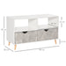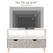 Our multimedia stand boasts a broad and robust tabletop, ideally sized to accommodate screens up to 42 inches, ensuring your viewing experience is both stylish and secure. Below, you will find an abundance of storage with two open shelves and two sleek drawers, perfect for organizing various media components, gaming consoles, and other essentials to maintain a clutter-free environment.