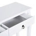 Constructed to cater to your organizational needs, this furniture piece comes equipped with dual pull-out drawers, perfect for securely housing essential everyday items such as keys, wallets, and small electronics. The spacious tabletop serves as an ideal stage to display your cherished photographs, decorative items, or lush potted plants, while an additional lower shelf provides extra space for books, magazines, or decorative baskets.